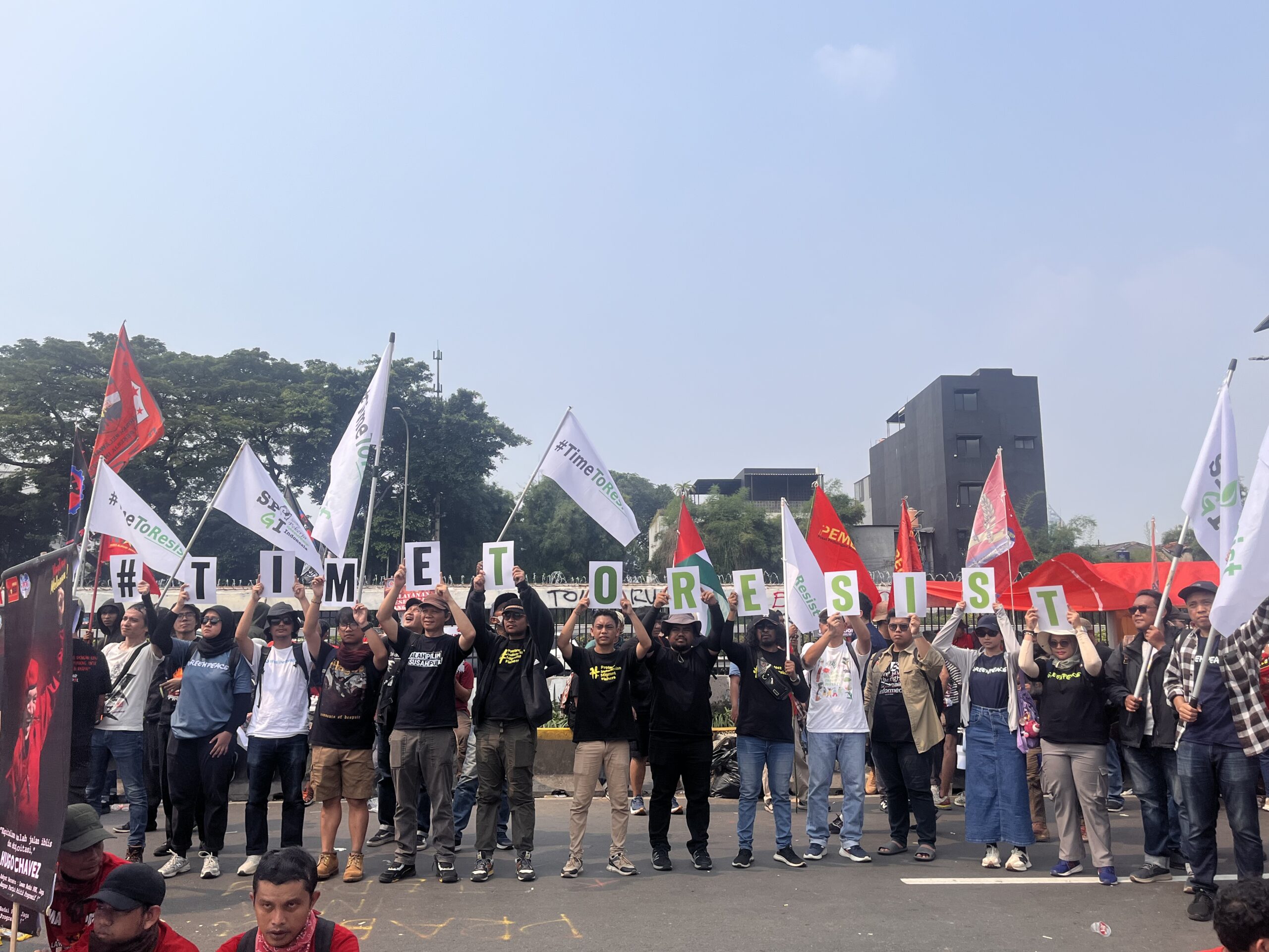 Gerakan Buruh Bersama Rakyat (Gebrak) menggelar aksi demonstrasi memperingati Hari Buruh Internasional atau May Day di Gedung DPR RI pada Rabu (01/05). Demonstrasi yang dihadiri ribuan buruh dan berbagai elemen rakyat ini mempunyai satu tema besar, yakni “Kapitalisme, Oligarki, dan Militerisme Musuh Kelas Pekerja.”