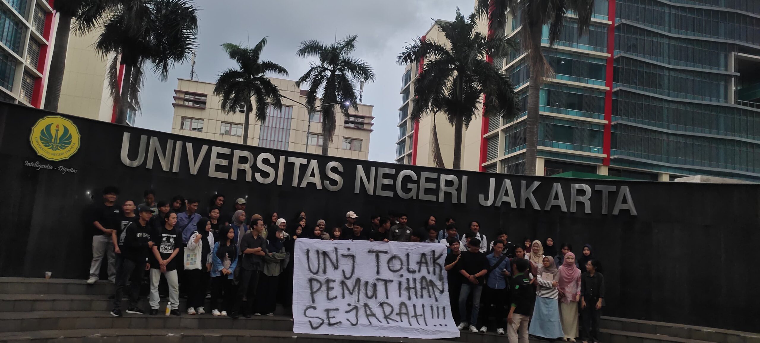 Aliansi Universitas Negeri Jakarta (UNJ) Melawan menyelenggarakan diskusi publik yang berjudul “Penulisan Ulang Sejarah: Upaya Keadilan atau Manipulasi Kepentingan” di depan Gedung KH. Hasjim Asy’arie, Kampus A pada Senin (07/07). Diskusi tersebut membahas persoalan proyek penulisan ulang sejarah yang digarap Menteri Kebudayaan, Fadli Zon.
