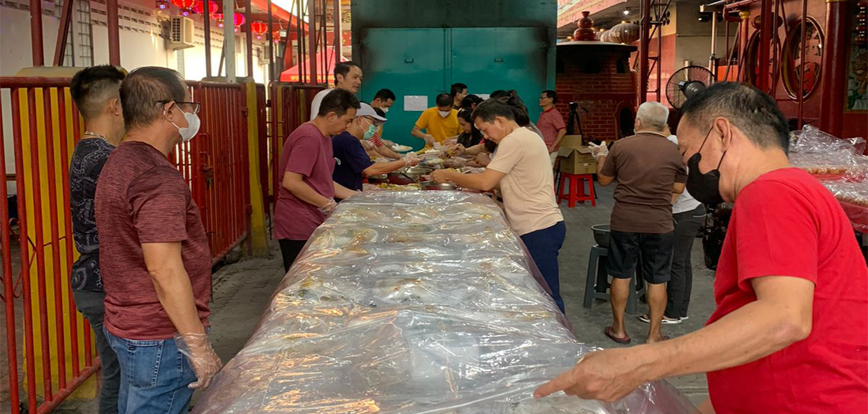 Menjelang berbuka, di depan gerbang komplek Vihara dan Klenteng Dharma Bhakti dipadati oleh warga yang sedang mengantri. Terlihat beberapa orang berbusana serba merah menyusun piringan nasi, dan gelas-gelas berisikan es buah. Sekitar 350 piring nasi opor ayam dengan sayur nangka, dan es buah tersedia hari itu.